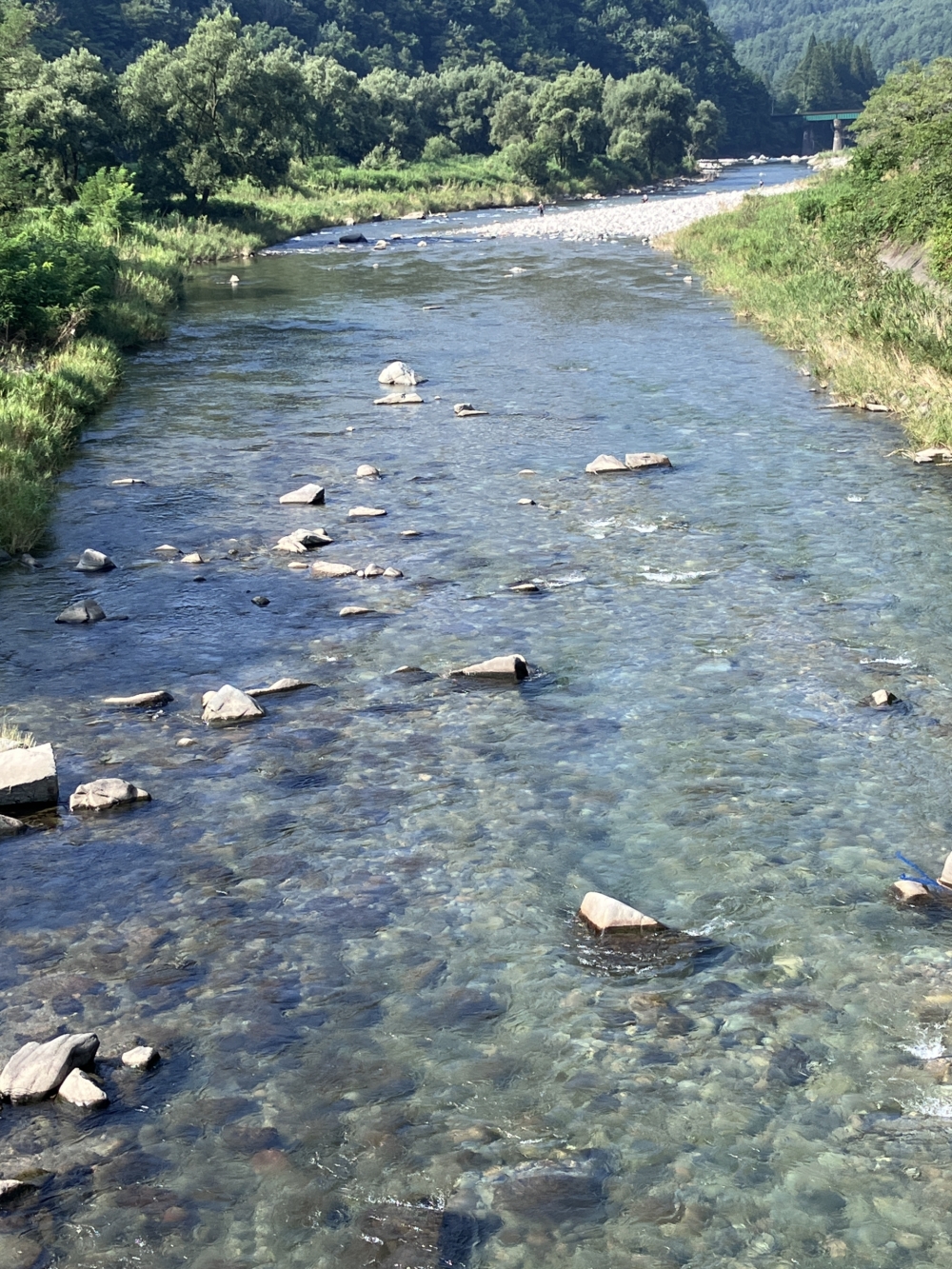 本流はおおむね平水となり、発電所の掃き出しからの濁水放流も止まって濁りの無いキレイな益田川上流となりました。
