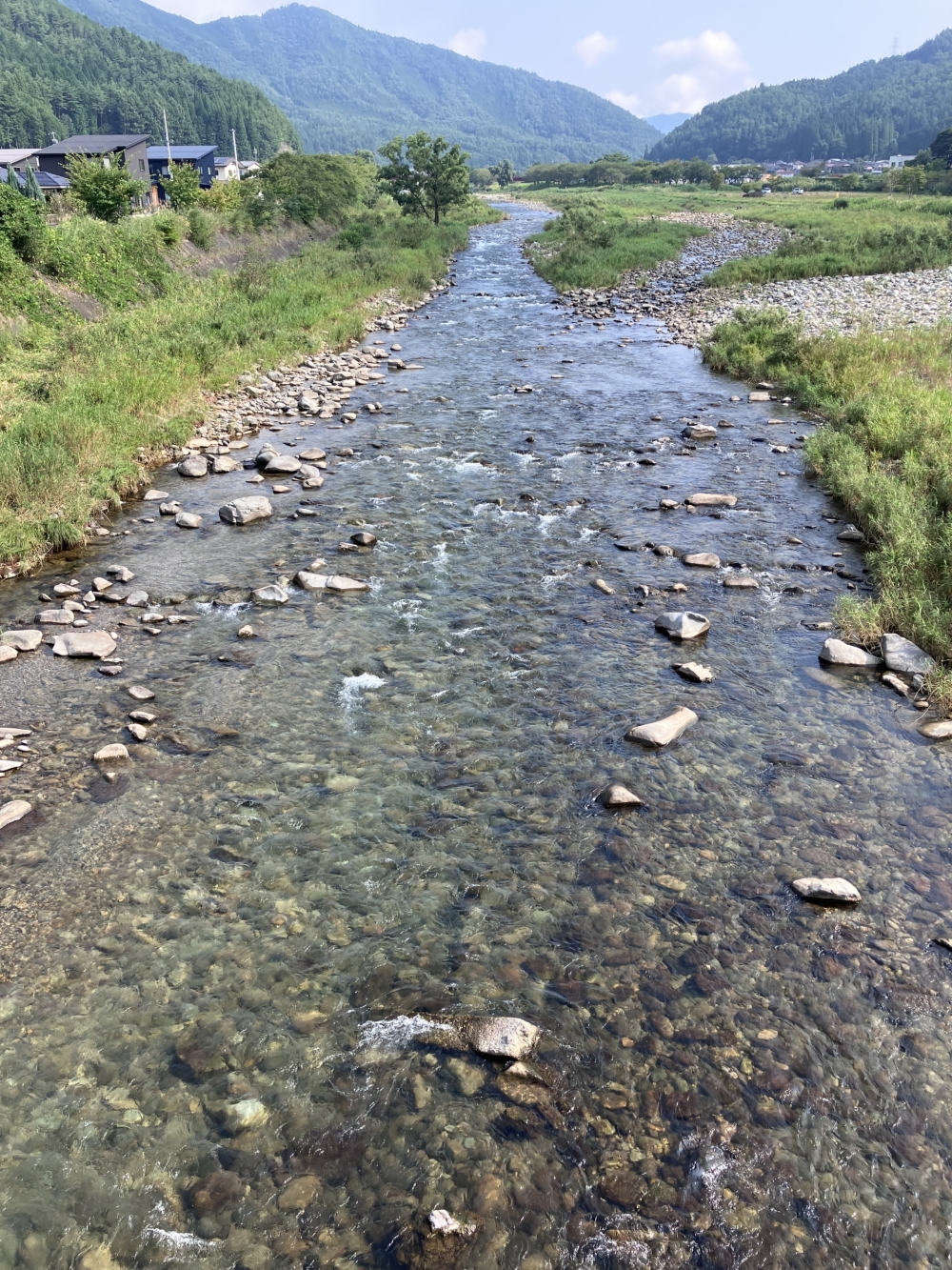 今日の益田川上流は平水、濁りなし