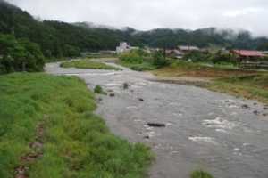午前8時 天候 くもり 気温19℃ 水位80cm高 濁りあり すっかり川の流れが ...