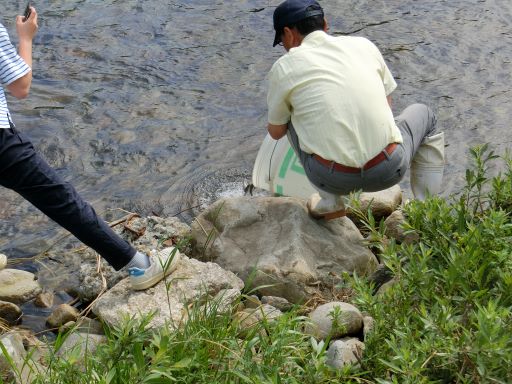 ところで、途中、柳島橋、小屋名橋から見ていると立て続けに鮎を釣る場面に遭遇