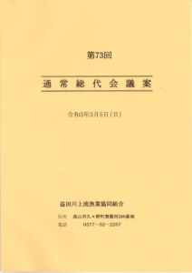 第73回 益田川上流漁業協同組合総代会が3月5日(日)に行われました