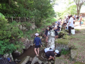 午後1時半から無数河川で釣り。後半は、公園内の小川で魚つかみ体験。