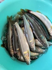 日照りの毎日でしたが、昨日久しぶりに夕方雨が降りました!短時間でしたが、強めの降りで少し川の水位も上がりました。今朝は活性が上がり、鮎だけでなく、アマゴも掛かりました。