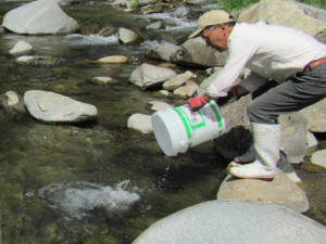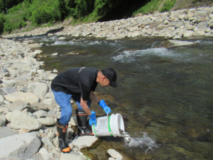 現在、鮎稚魚の放流を行っています
