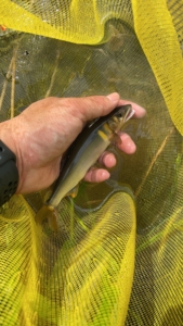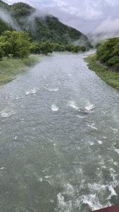 昨日はよく降り、1m以上水位の上がった本流ですが、今朝50㎝高まで下がってきています。少し濁りがあります。