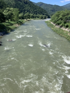 秋神ダムからの放水は続きますが、今日の夕方頃から濁りが改善されてくるとのこと、