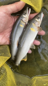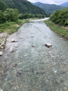 発電所からの放水が止まり、下流域の濁りも取れてきていつもの川に戻りつつあります。