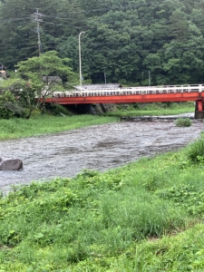 今朝9時、本流50㎝高 薄く濁りが入っています。
