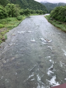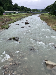 無数河川 いつもだと雨が止むとサーっと水位が下がる無数河川ですが、今回はなかなか下がらず濁りもとれません。それだけ雨量が多かったことが分かります。あららぎ湖の濁りがひどく、無数河川の濁りがとれるのはしばらくかかりそうです。