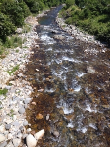 秋神川、10時現在 気温30℃、水温16℃、5㎝減水