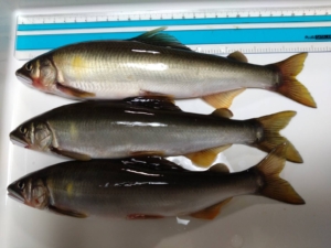 土曜日、渚で26㎝の鮎が釣れました。