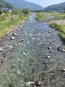 本流はおおむね平水となり、発電所の掃き出しからの濁水放流も止まって濁りの無いキレイな益田川上流となりました。