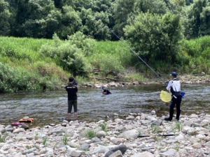 明日30日土曜午前10時から友釣専用区の網が解禁となります。友釣り専用は今までピンクの旗がたっていました。